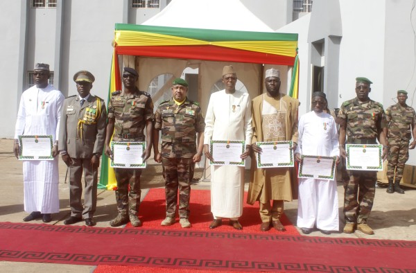 Parmi les récipiendaires, le Premier ministre, le général de division Abdoulaye Maïga, et le président du Conseil national de Transition (CNT), le général de corps d’armée Malick Diaw, le ministre d'État, ministre de l’Économie et des Finances, Alousséni Sanou, le ministre d'État, mi.